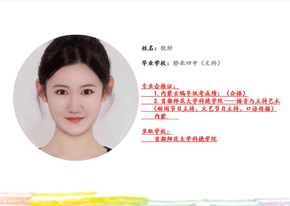 从2000年至今,“明仁艺考”培养超过5000+莘莘学子进入高等学府。其中包括中国传媒大学、浙江传媒学院、北京电影学院、中央戏剧学院、上海戏剧学院、陕西师范大学、内蒙古大学等重点院校,在整个蒙东地区独占鳌头,开启了属于自己的全新篇章。 品牌介绍