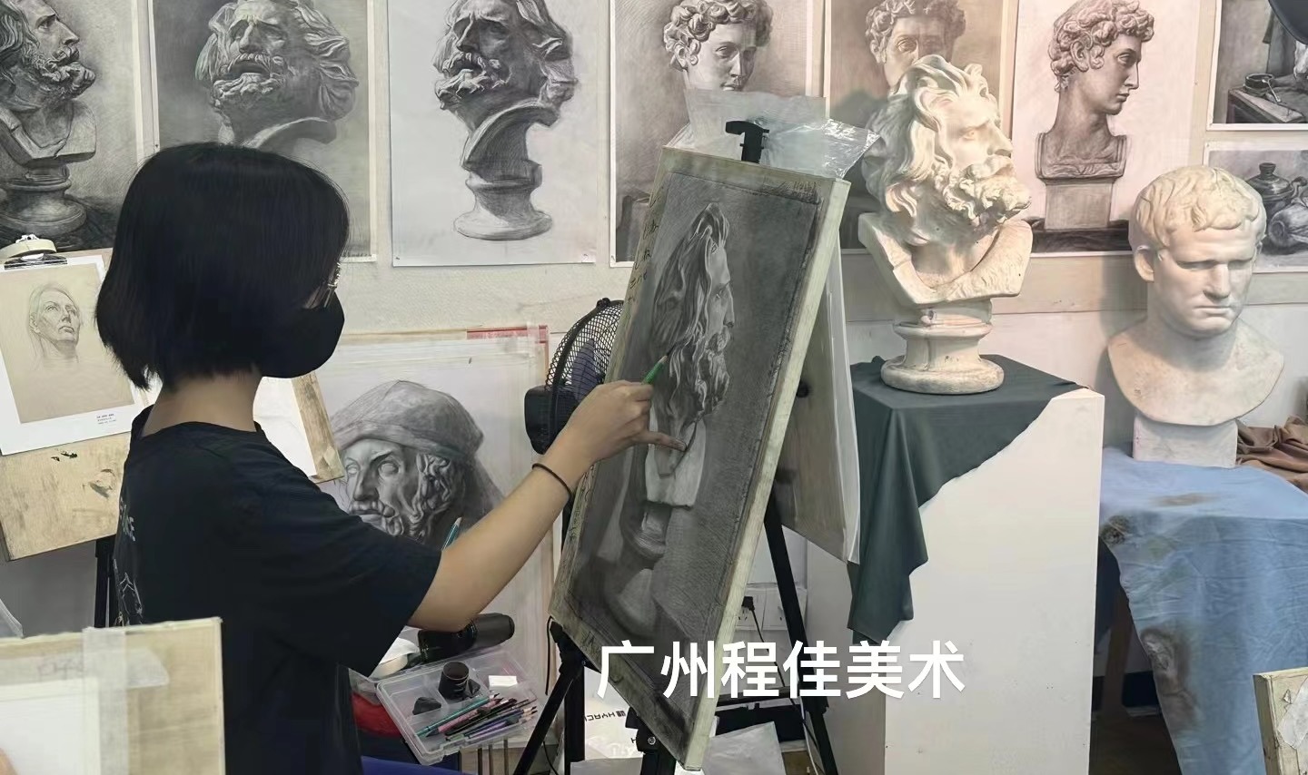 环境舒适程佳美术位于广州美术学院昌岗校区正对面,比邻中山大学,学术氛围浓郁,处于广州市核心地段,交通、生活非常便利。画室教学区、休息区宽敞整洁明亮,学习氛围极好。
